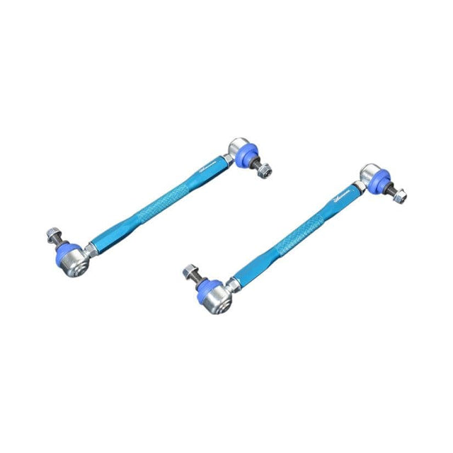 The essential for getting connected!HARDRACE adjustable stabilizer links allow you to fine tune the position your sway bar for optimum handling. The adj. stabilizer link manufactured from high tensile steel with tight ball joints and rubber boots for superior strength and rigidity to extend its life. An absolute must for any lowered vehicle.. Adjustable sway bar end links. Self-lubricating plastic bearing and bracket. More direct energy transfer and feel. Improves handling performance. Perfect for lowered vehicles