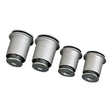 Harden rubber bushing made with high strength and anti-crack rubber material, solid steering response and driving suspension feel, resist side inclined while cornering at high speed maneuvers. Reduces vibration. Provides stability. Increase steering response. OEM direct replacement. Regular greasing not required. No noise or squeaks