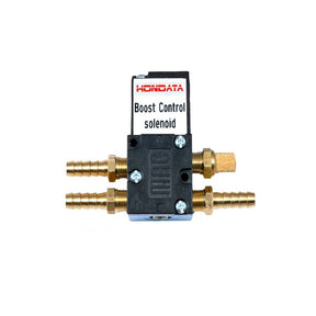 HONDATA 4-port Boost Solenoid. Available for the Hondata s300, Hondata K-Pro and K100, the normally closed boost control solenoid is designed for use in high boost applications, but also works well in low boost applications. It is normally closed so that if there is a failure you will run off the waste-gate spring instead of over boosting. It uses 1/8th NPT fittings which allow you to use NPT to AN fittings if you wish. This is the newer 4-port version.