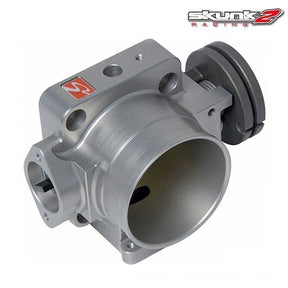 Skunk2 throttle bodies undergo an extensive design and testing process to produce a throttle body that doesn't just provide more flow but retains smooth drivability and OEM throttle characteristics. Each Pro Series Throttle Body is designed using the latest CAE (Computer Aided Engineering) tools, which results in a unit that exceeds industry standards. Pro Series Throttle Bodies are also CNC machined from forged, billet 6061-T6 aluminium and hard anodized for durability in Skunk2 signature finish. Additionally, Skunk2 unique design relocates the MAP sensor underneath and eliminates the OEM water passages for cooler operation and a cleaner appearance. Pro Series Throttle Bodies are also compatible with OEM throttle cables, which simplifies installation. Each Skunk2 Pro Series Throttle body also features sealed bearings for smooth operation and a genuine, integrated Skunk2 badge. All necessary hardware and a new throttle body gasket are included for trouble-free installation.