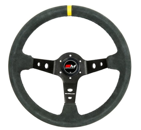 MOTAMEC RACE RALLY STEERING WHEEL SEMI DISH 350MM BLACK SUEDE BLACK SPOKE